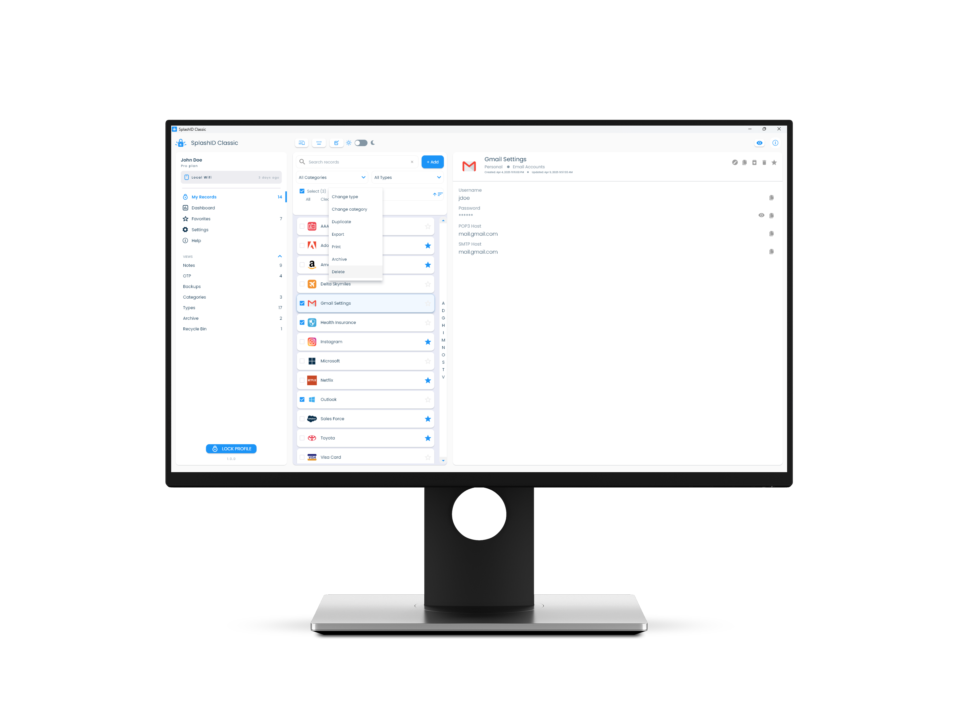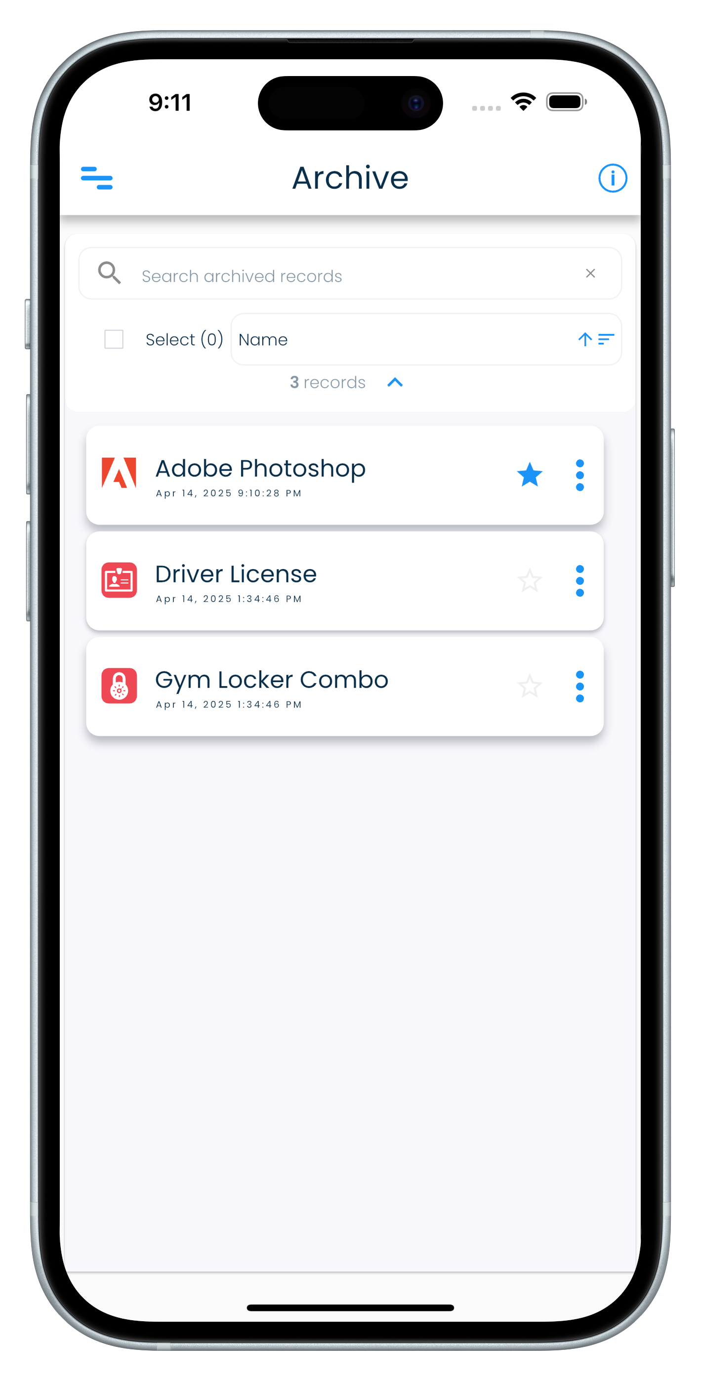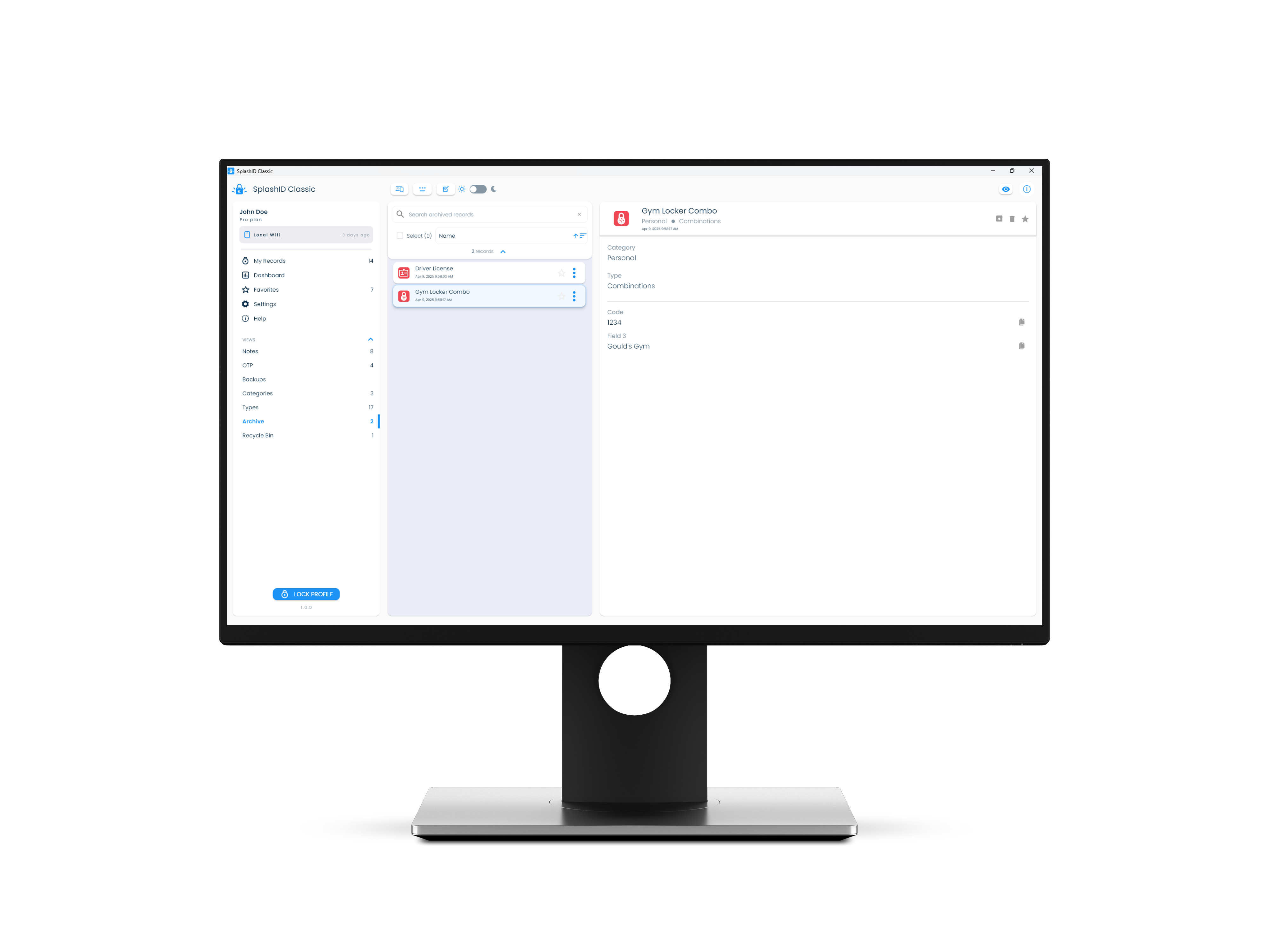 Archiving of records in SplashID Classic allows you to move records that are not needed to a separate area that can be accessed from the application menu. This helps in keeping your most relevant records in your main views.
