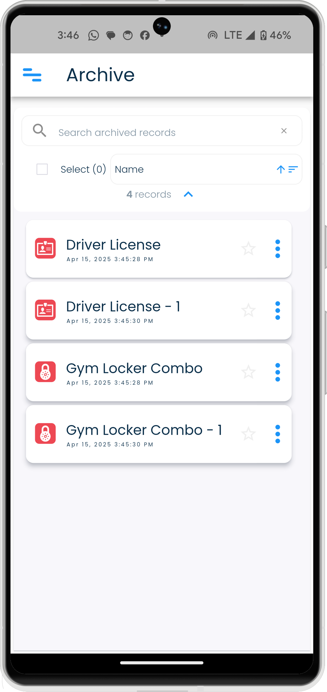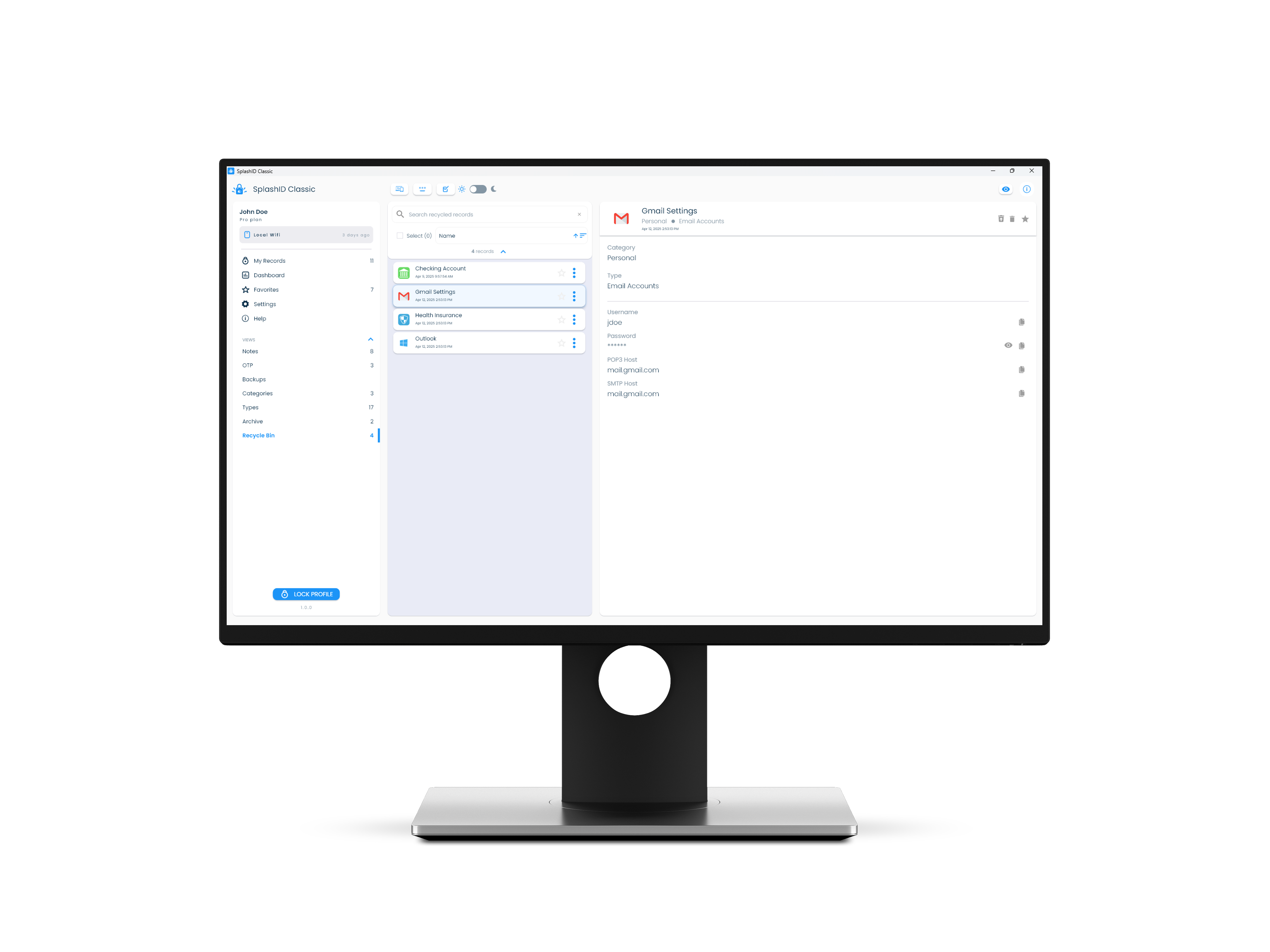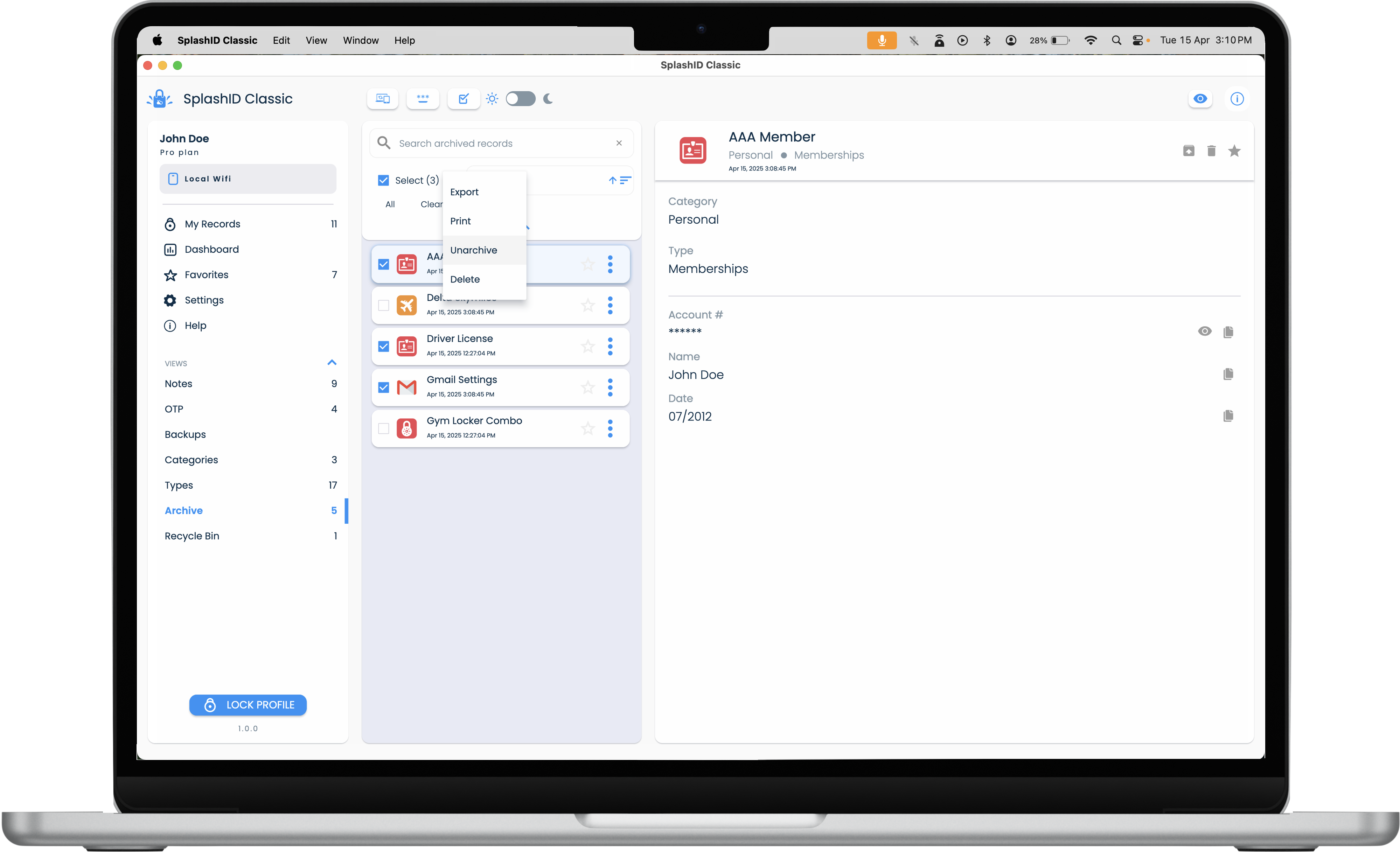 Archiving of records in SplashID Classic allows you to move records that are not needed to a separate area that can be accessed from the application menu. This helps in keeping your most relevant records in your main views.