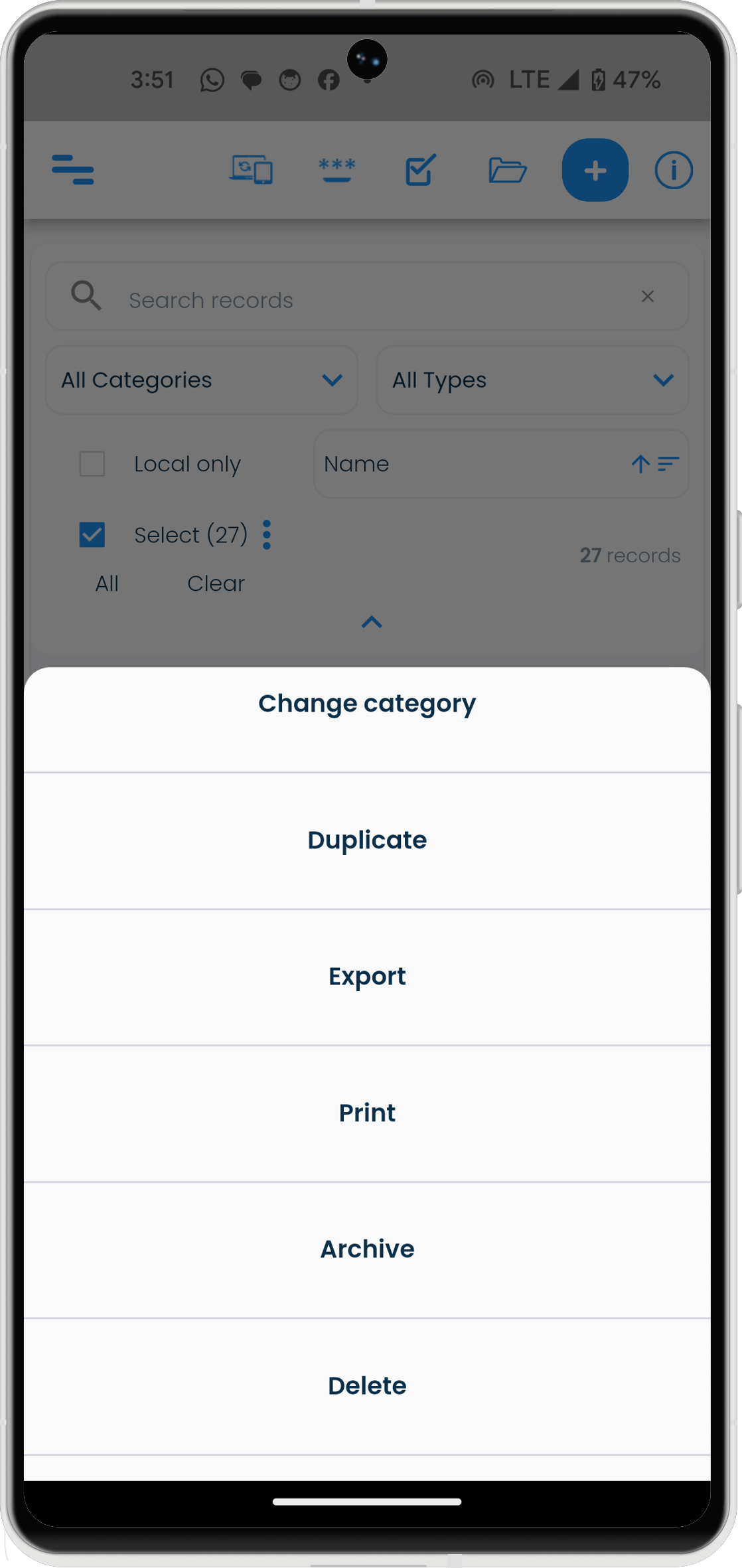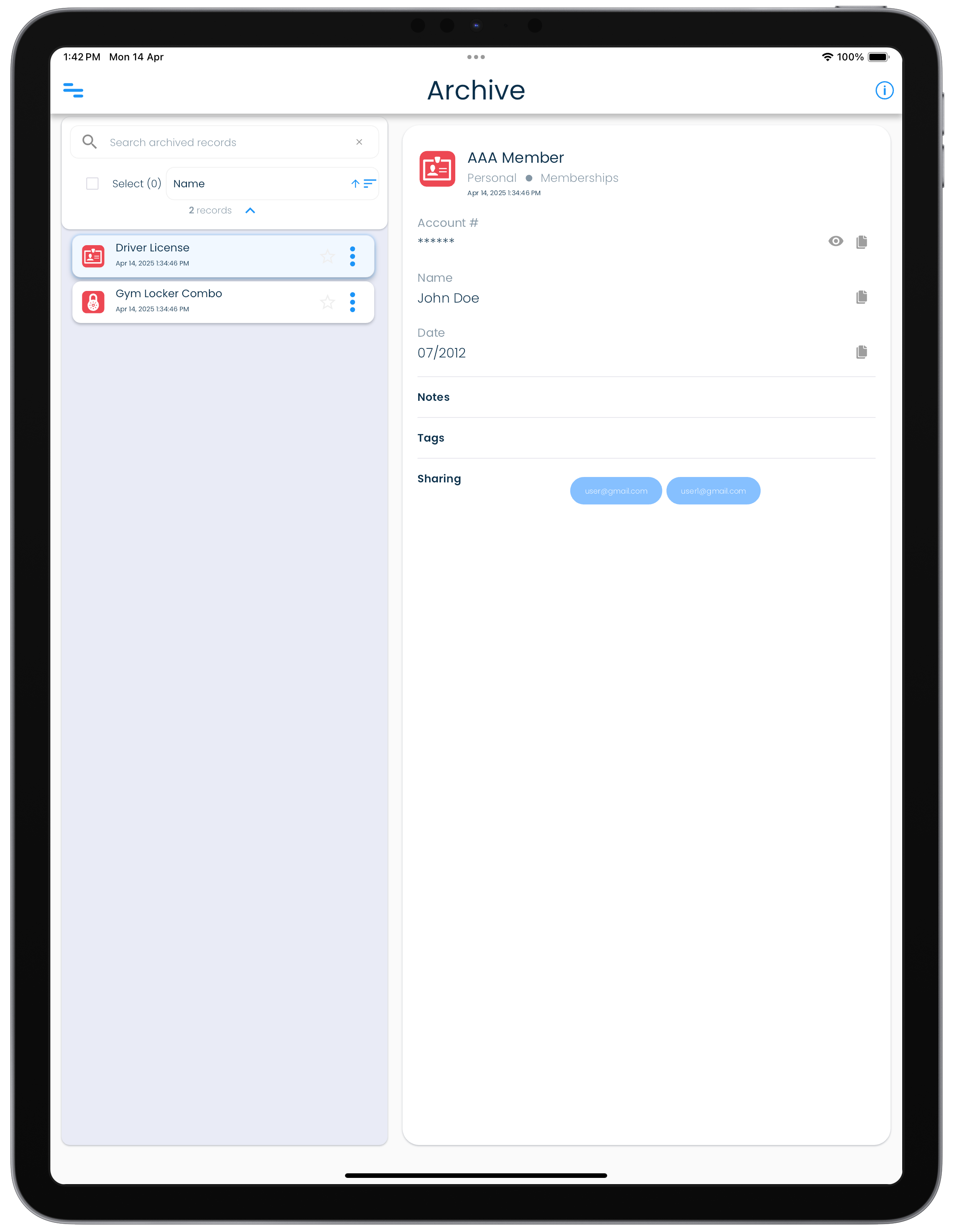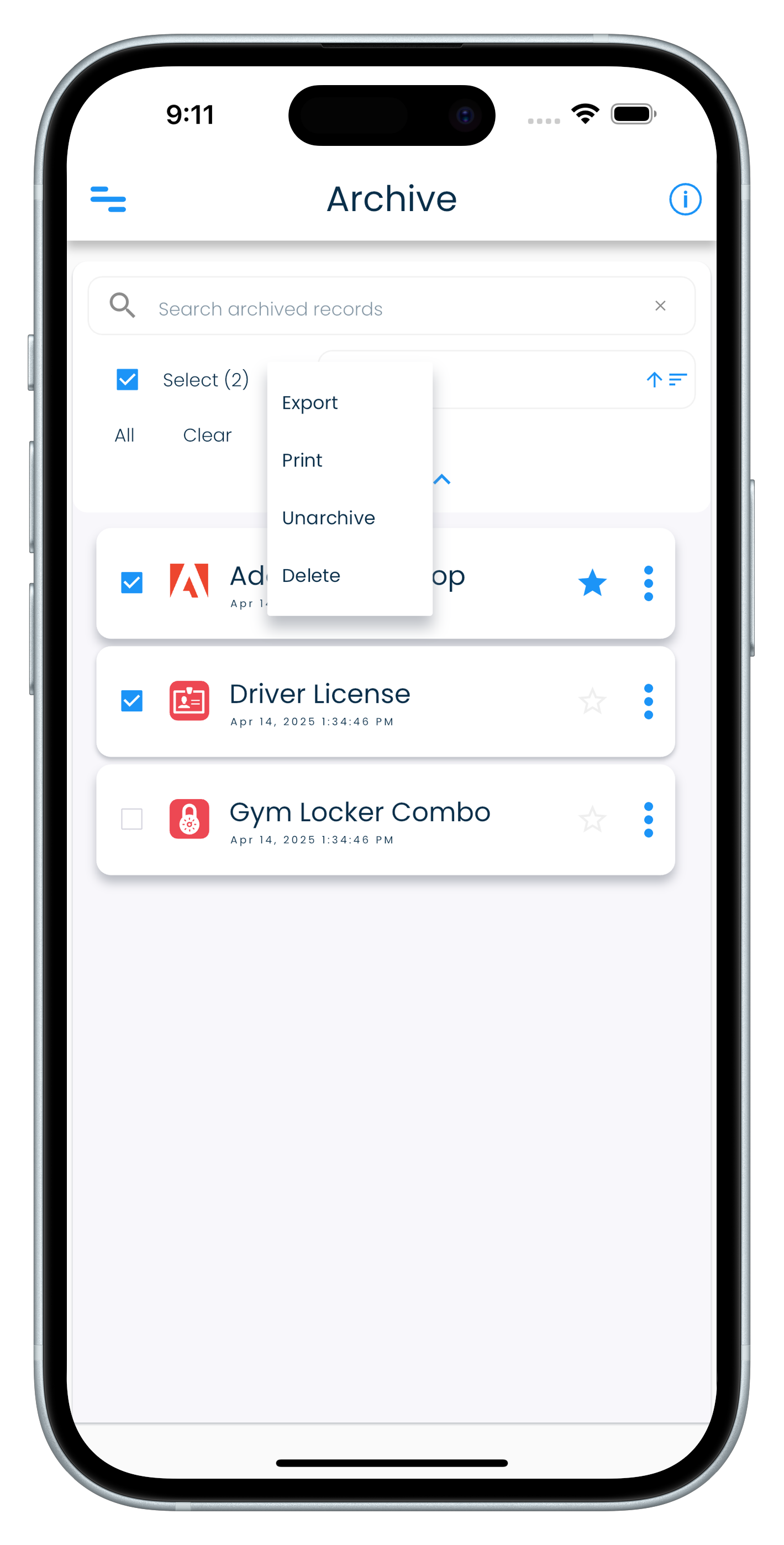 Archived records sync across devices, and can be unarchived back to the personal record list if they are needed to be accessed regularly again.