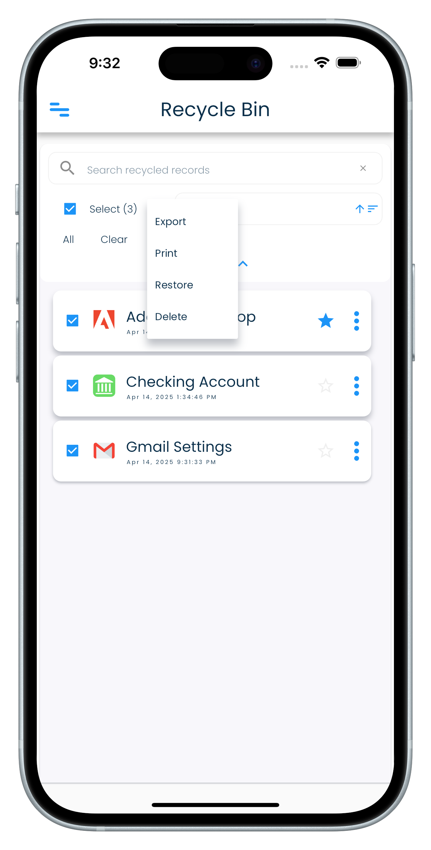 - Select the records that you want to restore.
