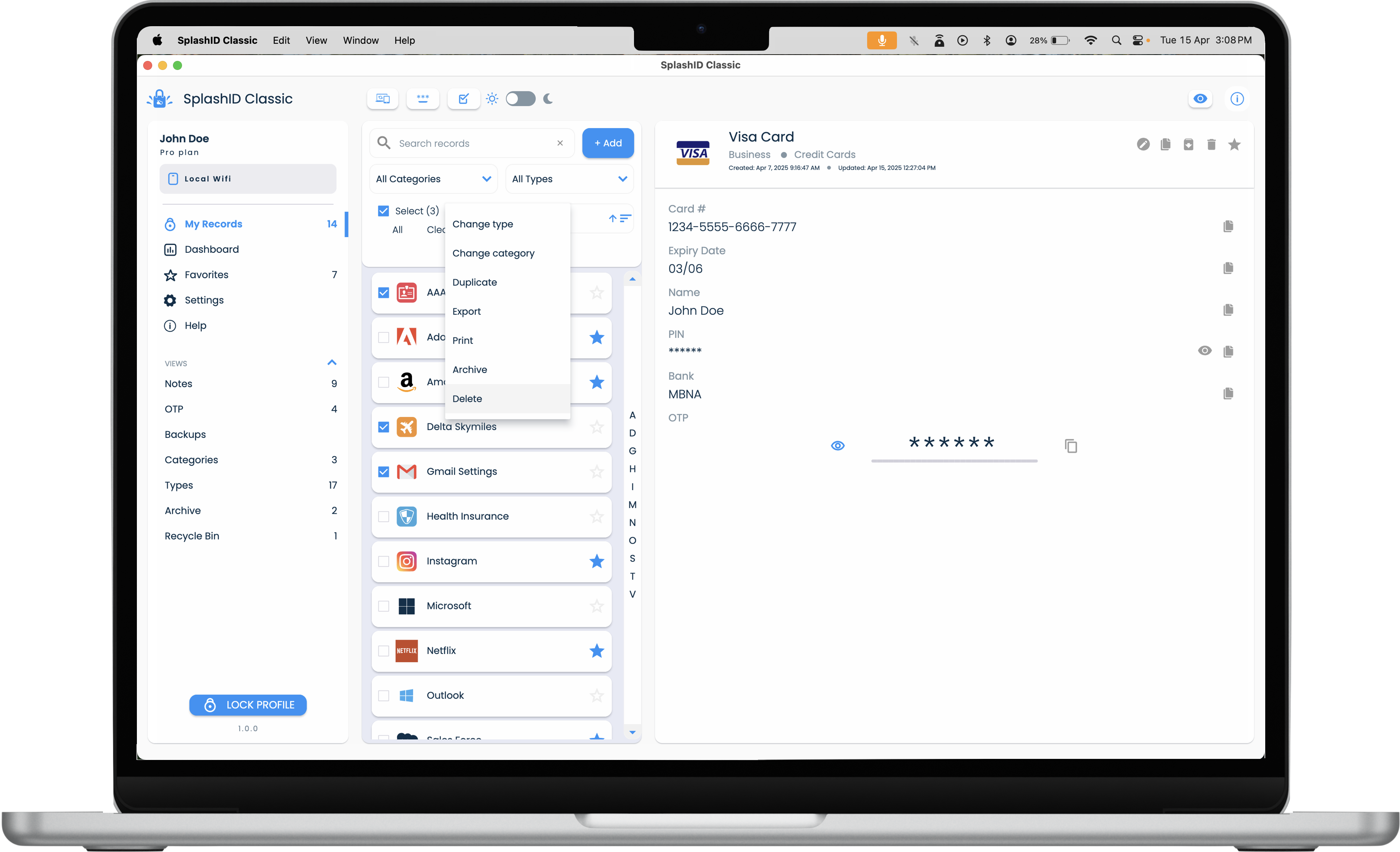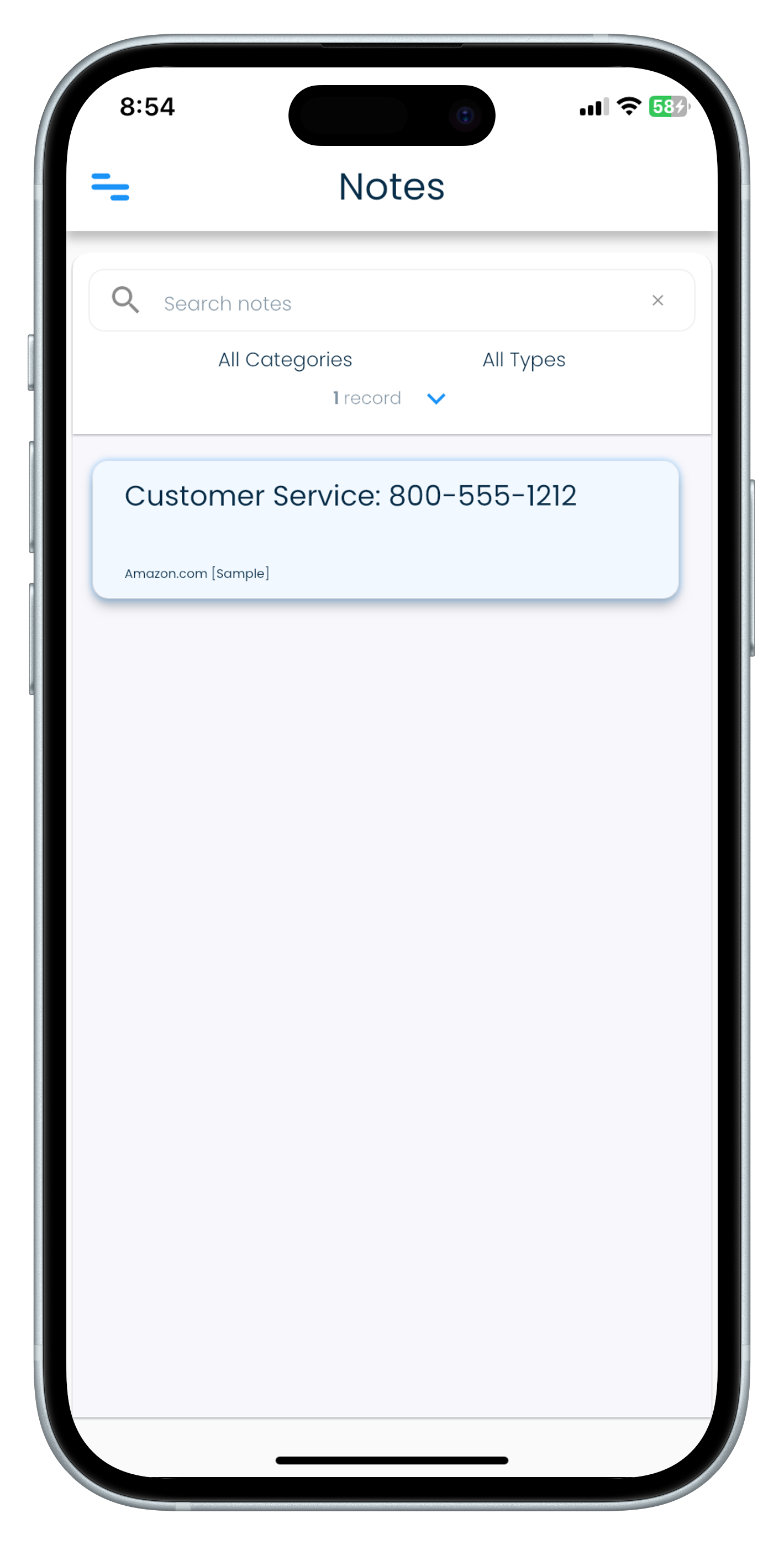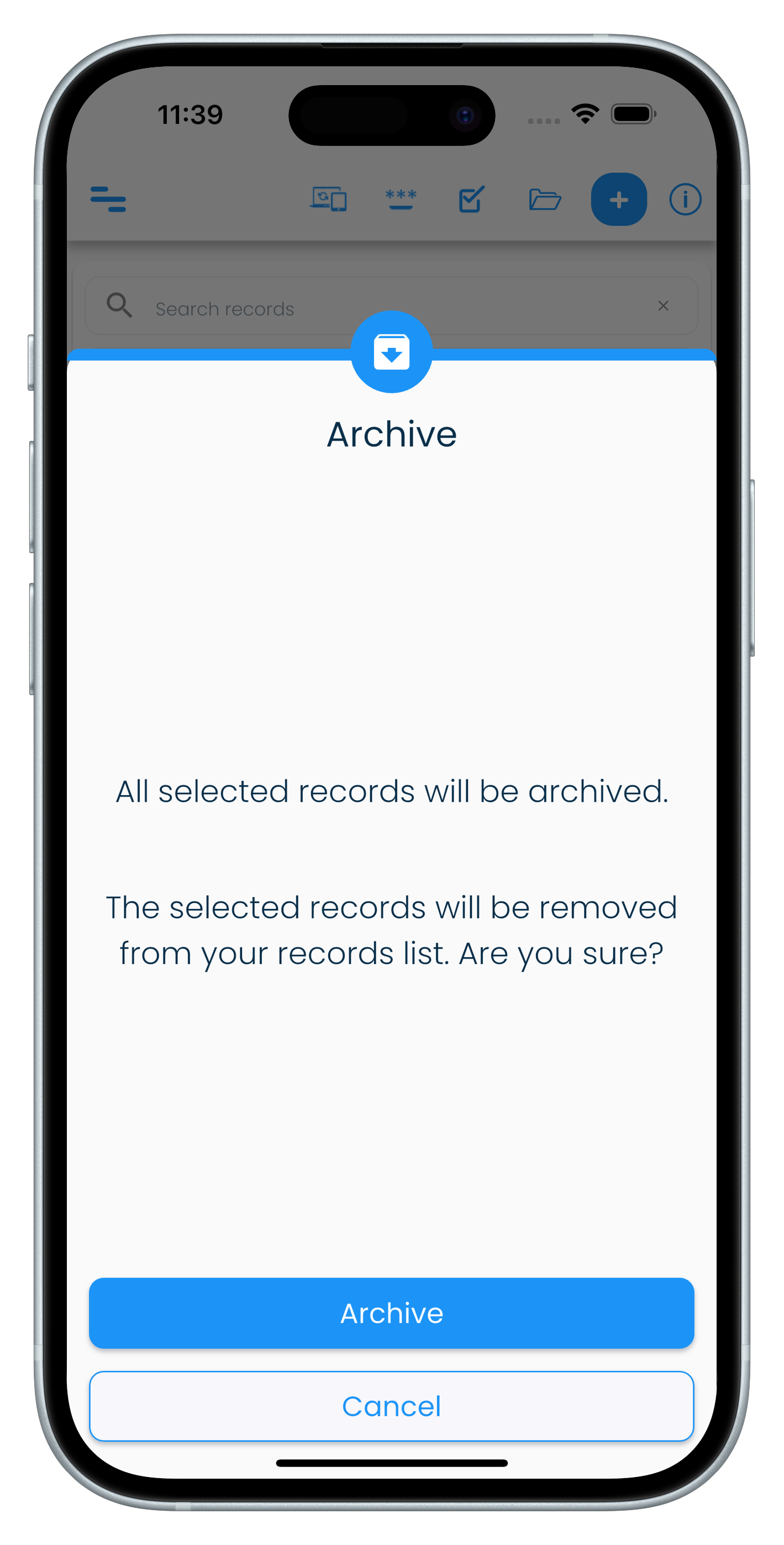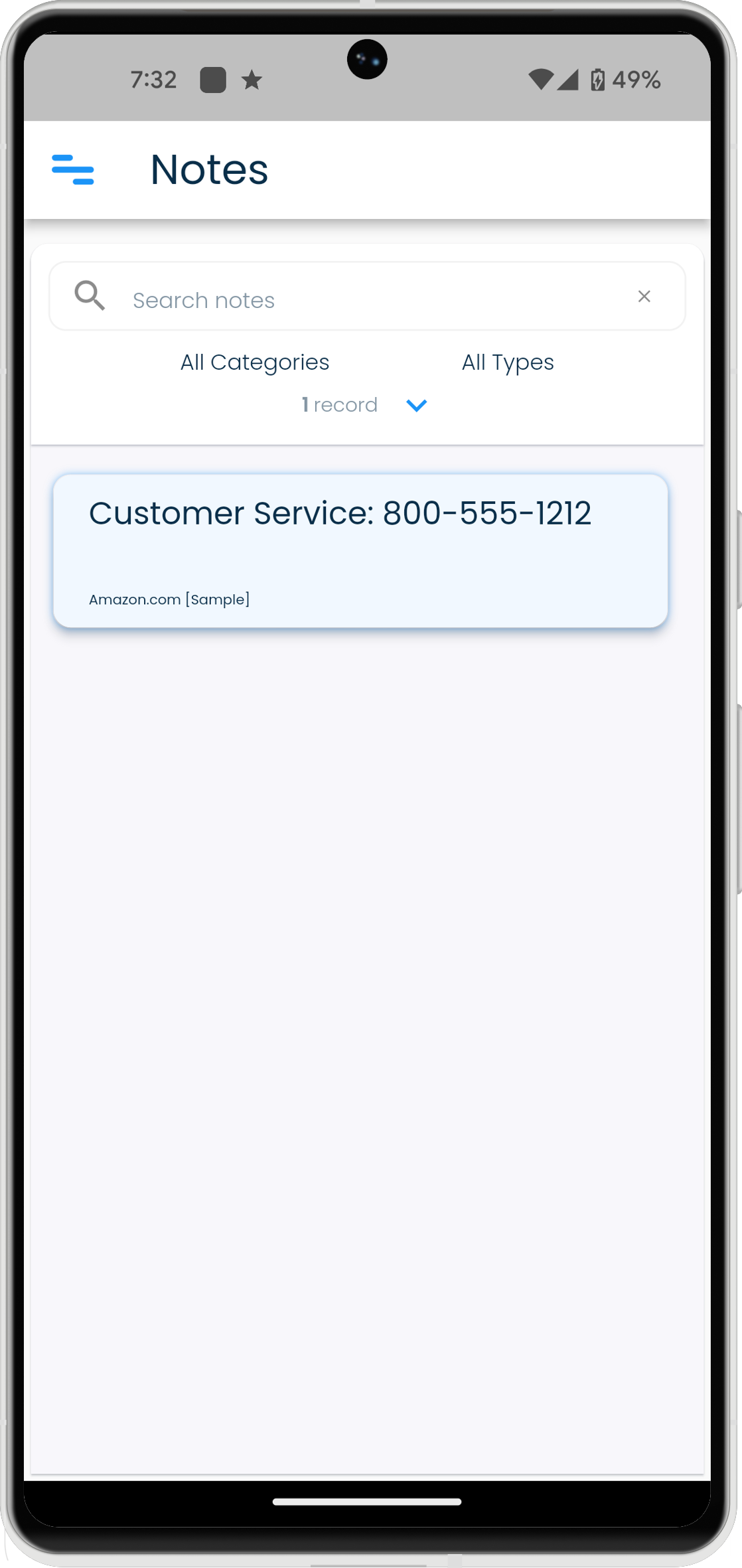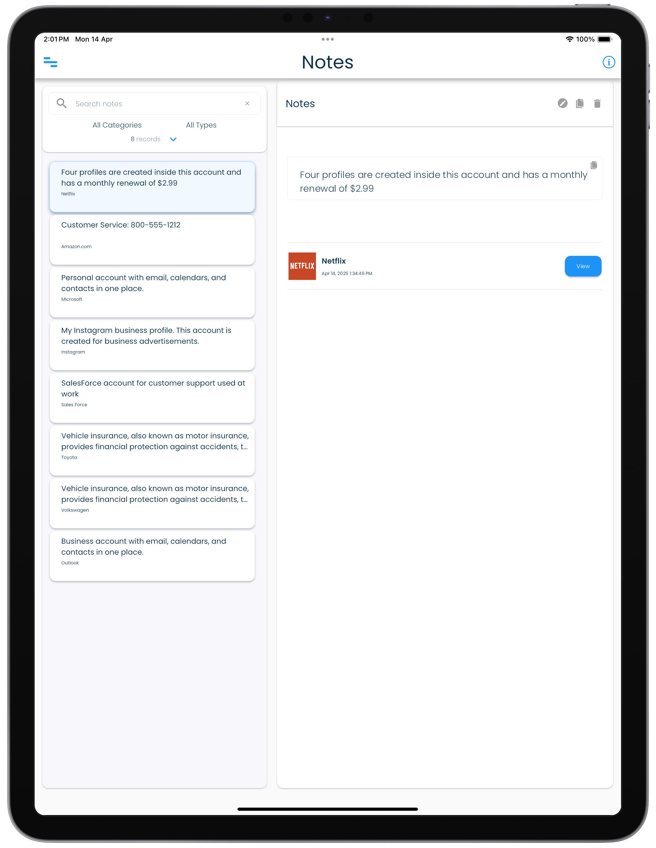 When you unlock the application on your device, you will be taken to the screen that shows all your records by default. You can search, filter or sort them to see them in the way that suits you.