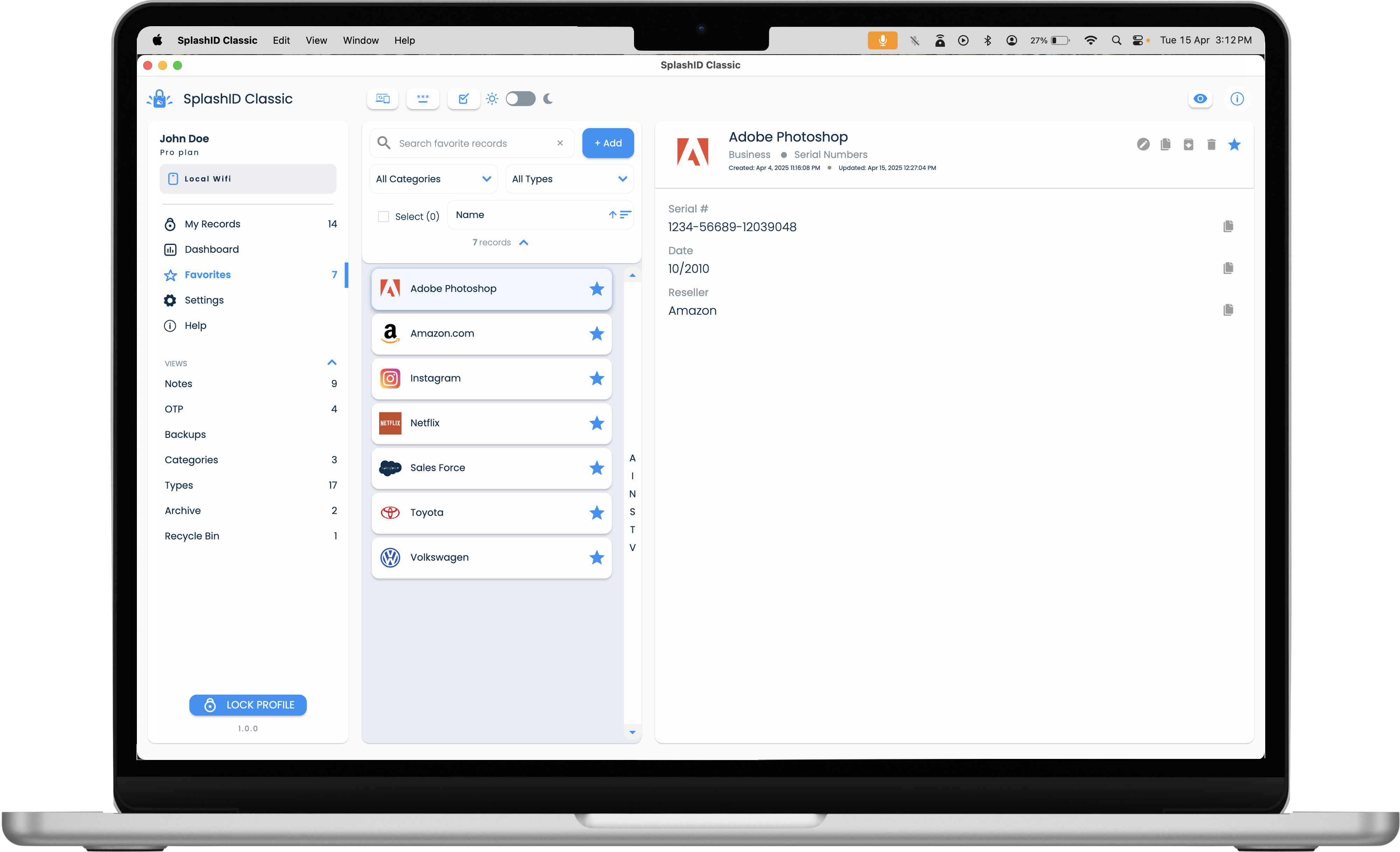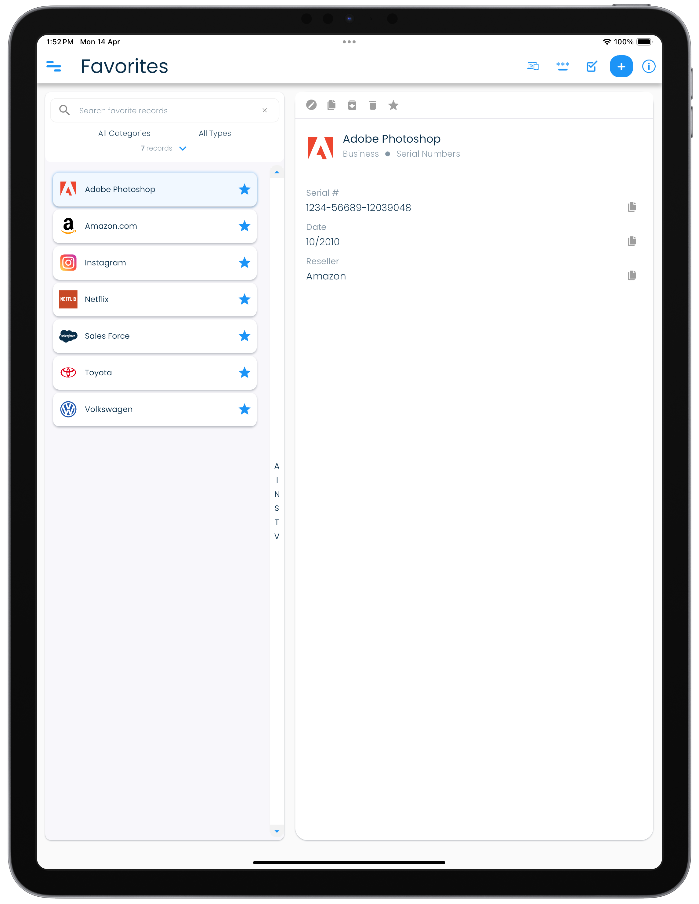 The Favorites view shows all your records that you have marked as a favorite in one place.