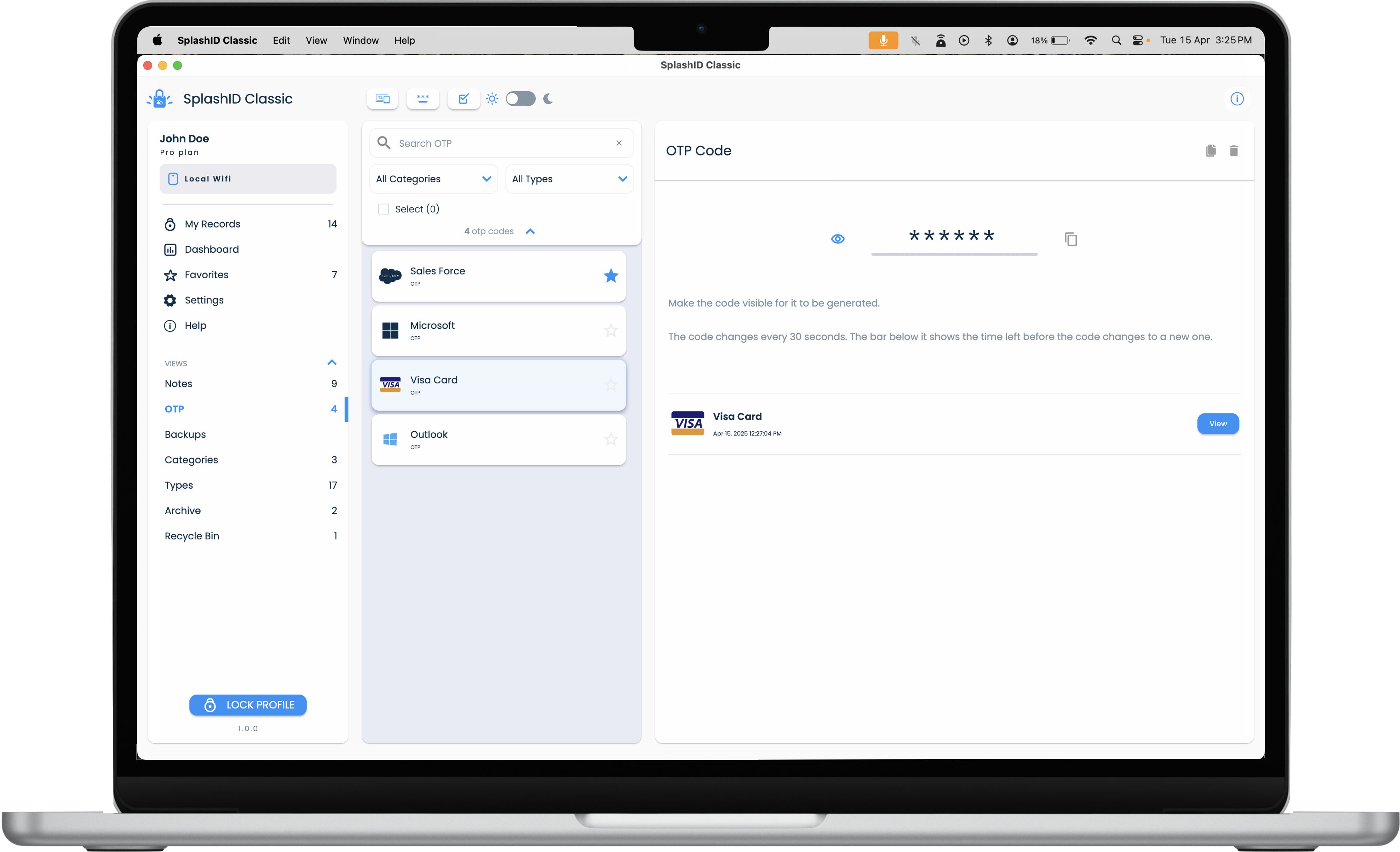 OTP fields can hold one time code generators. They display a 6 digit code when unmasked in the record details view. These fields can be used to add authenticator keys that generate codes for second factor verification in other websites and applications.